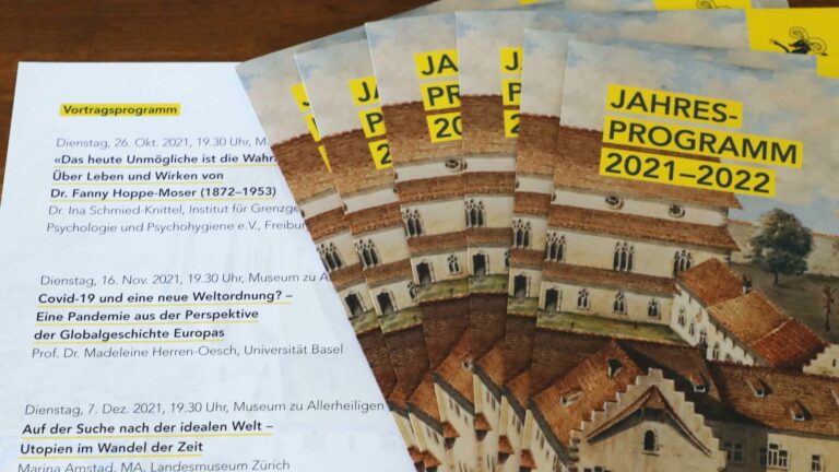 Vorträge und Exkursion gehören zu den wichtigsten Aktivitäten des Historischen Vereins. Das Jahresprogramm wird jeweils nach der Sommerpause publiziert. Die aktuellen Veranstaltungen finden Sie im Jahresprogramm 2023/24 [PDF, 231 KB] und in der folgenden Liste.
